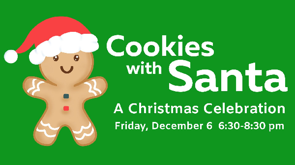 Enjoy time to talk with Santa, delicious cookies with milk or hot chocolate, decorate a cookie to take home, and join in more fun as we celebrate together.